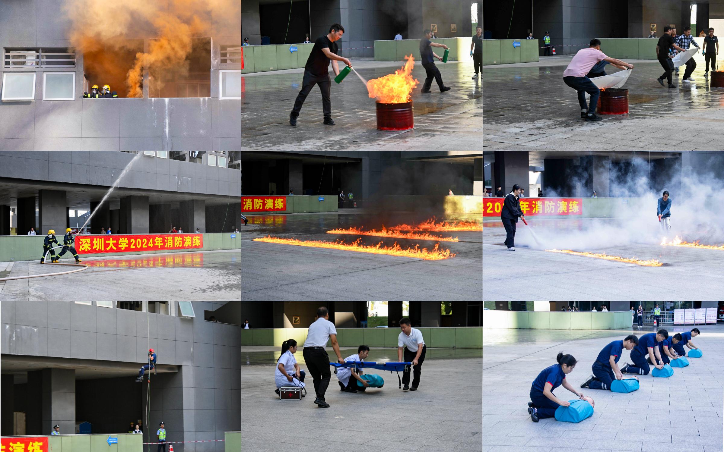 11月是消防宣传月,在“119”消防日即将到来之际,深圳大学为切实做好消防安全工作,增强师生消防安全意识,提高师生应对突发事件的处置能力,11月8日,深圳大学安全保卫部联合党政办公室、党委宣传部、团委、学生部、后勤保障部、丽湖校区管理办公室、相关学院、社区工作站、中航物业、属地消防救援单位以及校内餐厅、商户等,在粤海、丽湖两校区分别举办了内容丰富的消防演练活动。副校长汪永成担任总指挥。