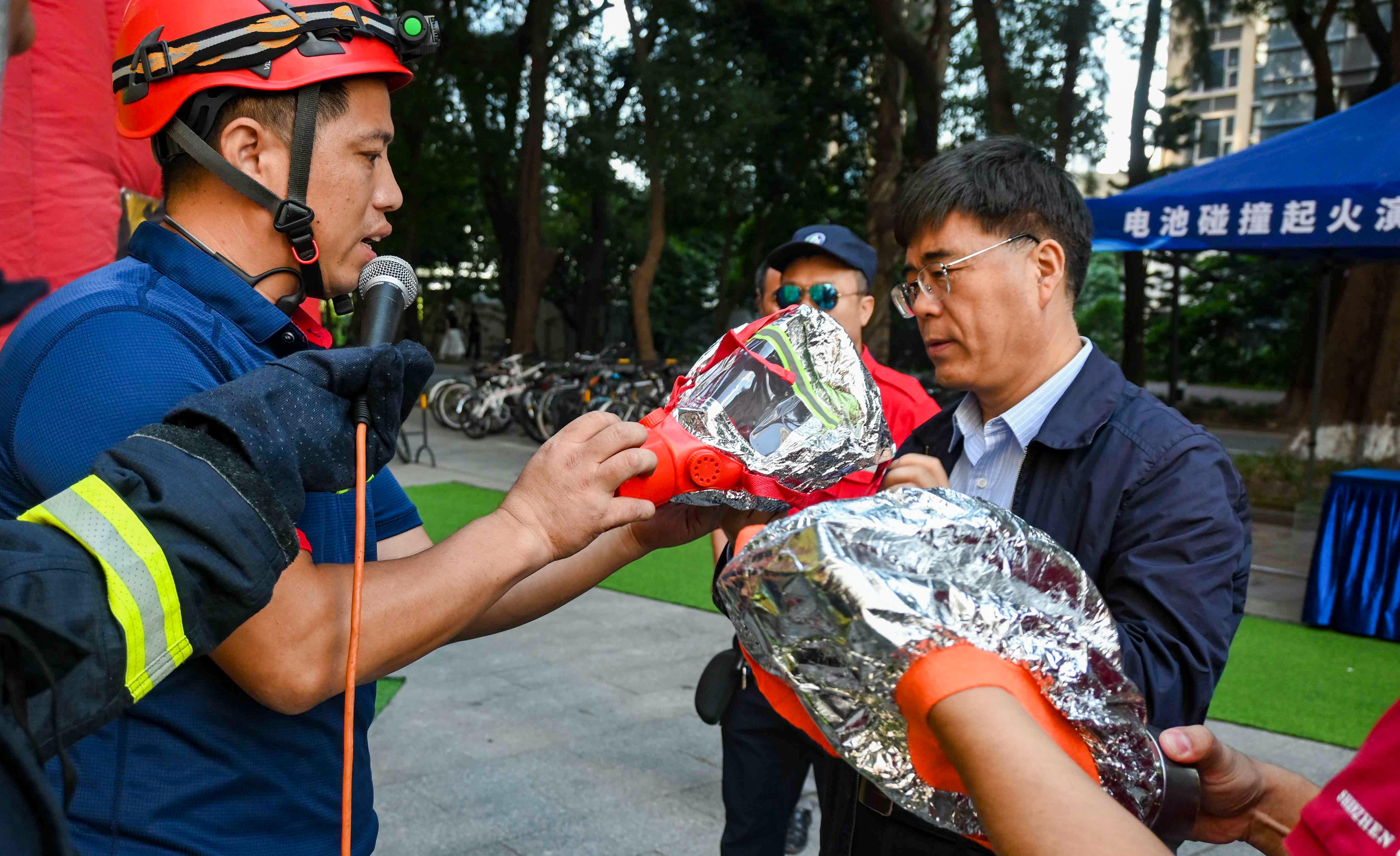 在灭火救援现场实施环节,学校设置了高空缓降救援、个人防护及破拆示范、心肺复苏集体示范以及扑灭初起火灾等观摩项目,让参加演练的师生了解和学习相关技能。消防安全体验培训环节则设置了初起火灾的灭火实操、锂电池碰撞及灭火体验、消防疏散逃生屋体验、高层应急逃生平台、消防救援绳结教学、电磁迷宫体验、触电与防电气火灾知识科普、心肺复苏应急处置以及消防安全装备展示与体验等多个项目,师生们通过亲身体验和互动学习,进一步加深了对消防安全知识的理解和掌握。